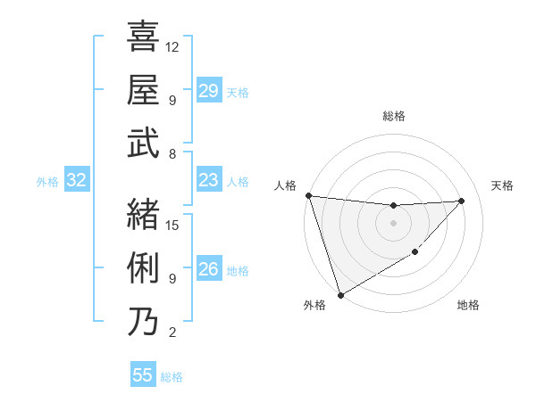 喜屋武 緒俐乃さんの外格は32画の5点!