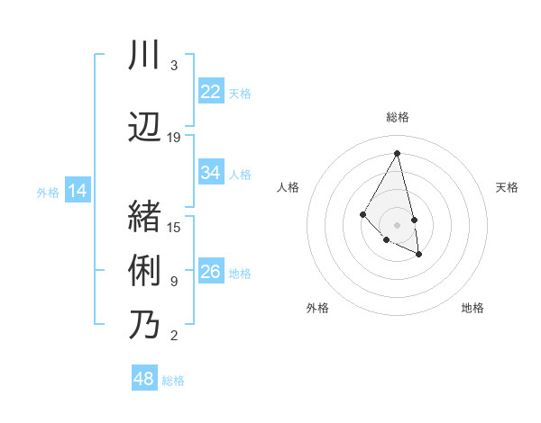 川辺 緒俐乃さんの総格は48画の4点!
