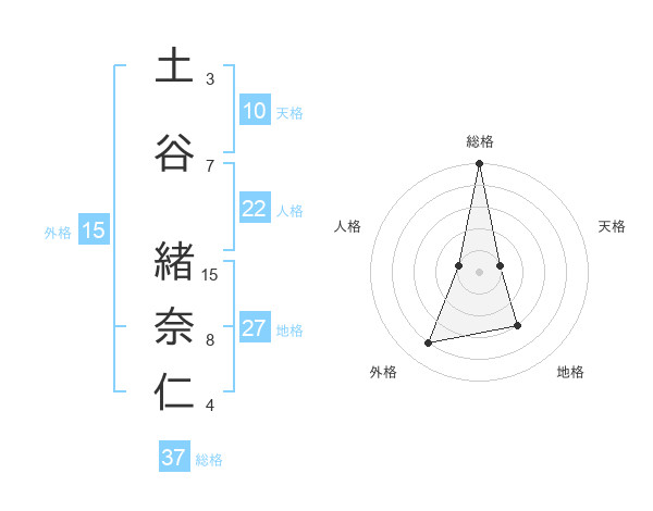 土谷 緒奈仁さんを姓名の画数から五運を鑑定