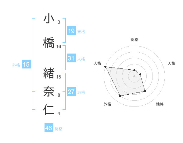 小橋 緒奈仁さんの地格は27画の3点!