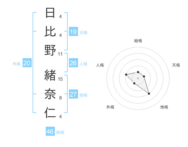 日比野 緒奈仁さんを姓名の画数から五運を鑑定