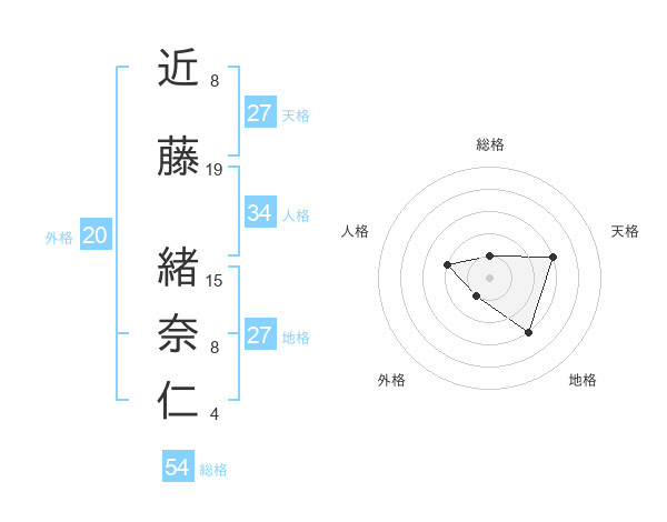 近藤 緒奈仁さんの地格は27画の3点!