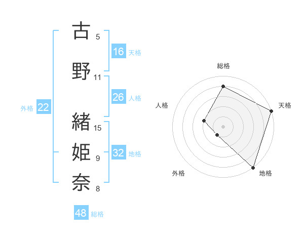 古野 緒姫奈さんを姓名の画数から五運を鑑定