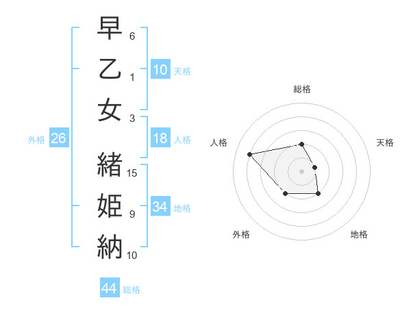 早乙女 緒姫納さんの天格は10画の1点!