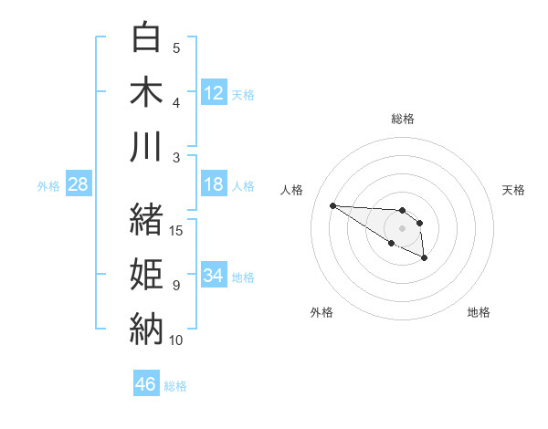 白木川 緒姫納さんを姓名の画数から五運を鑑定