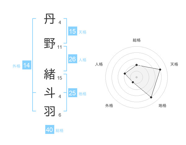丹野 緒斗羽さんの天格は15画の4点!
