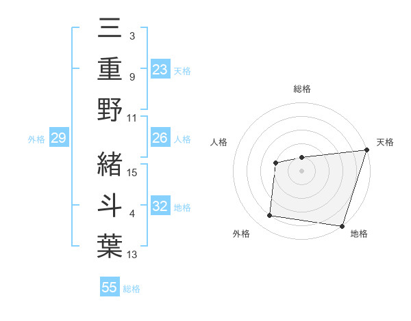 三重野 緒斗葉さんの天格は23画の5点!