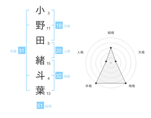 小野田 緒斗葉さんの総格は51画の3点!