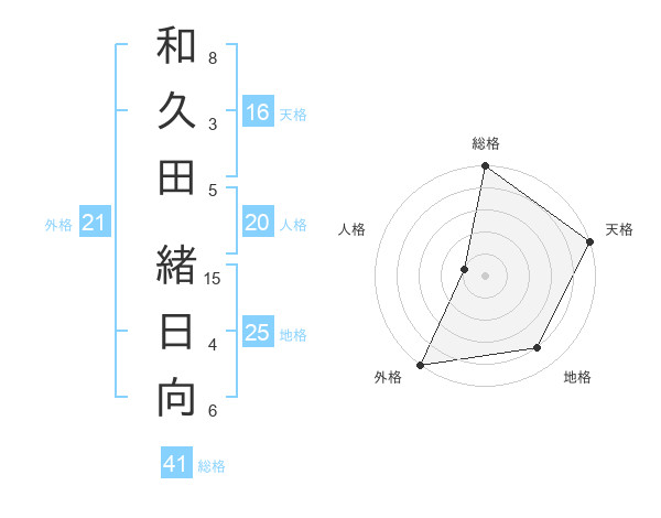 和久田 緒日向さんを姓名の画数から五運を鑑定