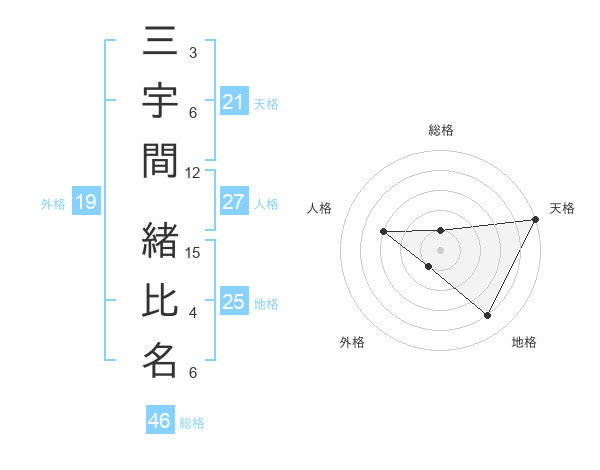 三宇間 緒比名さんを姓名の画数から五運を鑑定