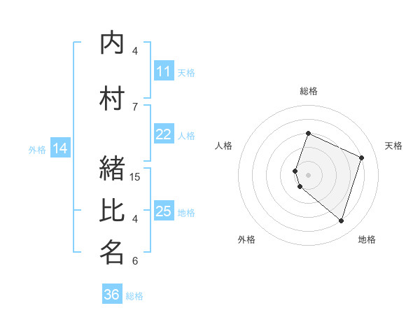 内村 緒比名さんを姓名の画数から五運を鑑定