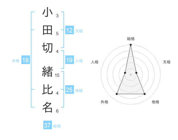 小田切 緒比名さんを姓名の画数から五運を鑑定