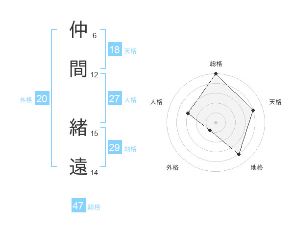 仲間 緒遠さんの総格は47画の5点!