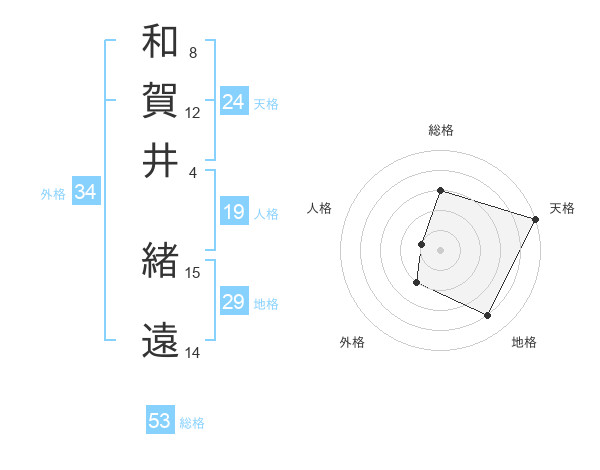 和賀井 緒遠さんを姓名の画数から五運を鑑定
