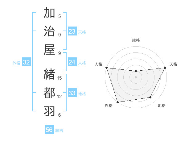 加治屋 緒都羽さんを姓名の画数から五運を鑑定