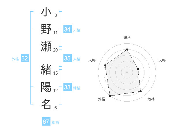 小野瀬 緒陽名さんを姓名の画数から五運を鑑定