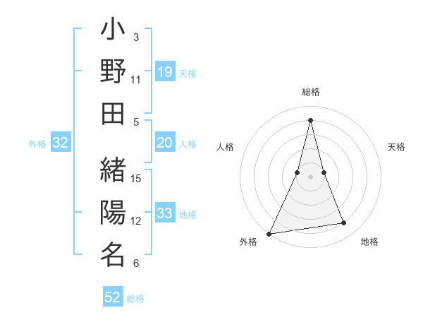 小野田 緒陽名さんを姓名の画数から五運を鑑定