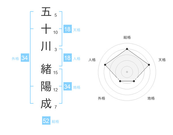 五十川 緒陽成さんを姓名の画数から五運を鑑定