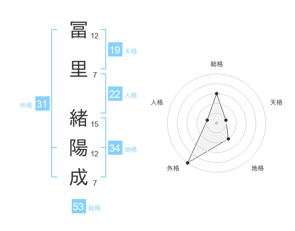 冨里 緒陽成さんを姓名の画数から五運を鑑定