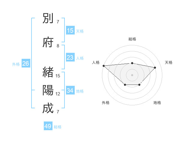 別府 緒陽成さんを姓名の画数から五運を鑑定