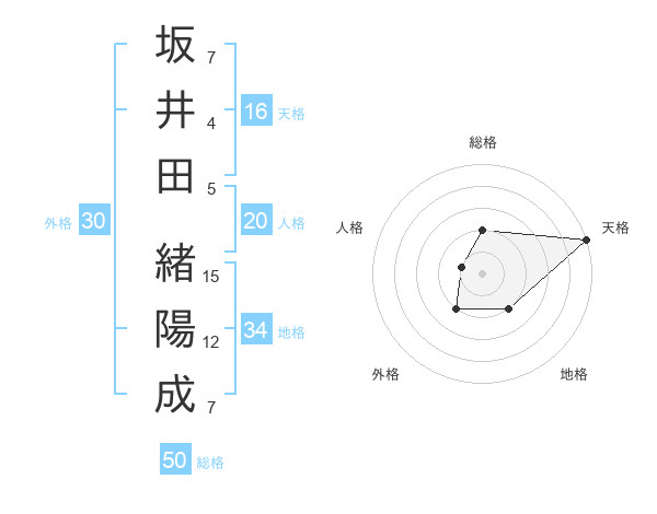 坂井田 緒陽成さんを姓名の画数から五運を鑑定