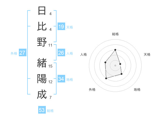 日比野 緒陽成さんを姓名の画数から五運を鑑定