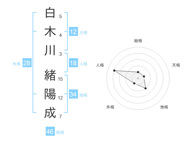 白木川 緒陽成さんの総格は46画の1点!