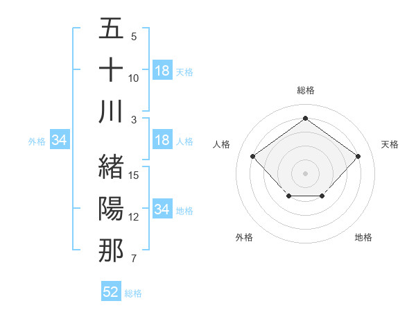 五十川 緒陽那さんを姓名の画数から五運を鑑定