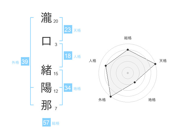 瀧口 緒陽那さんの外格は39画の5点!