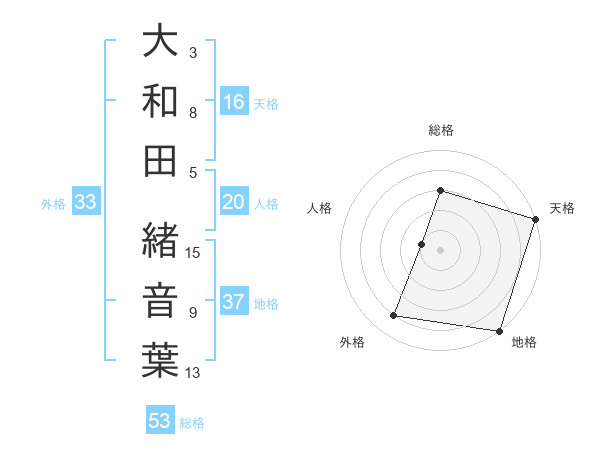 大和田 緒音葉さんの総格は53画の3点!