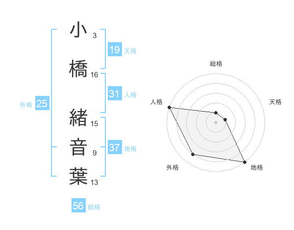 小橋 緒音葉さんを姓名の画数から五運を鑑定