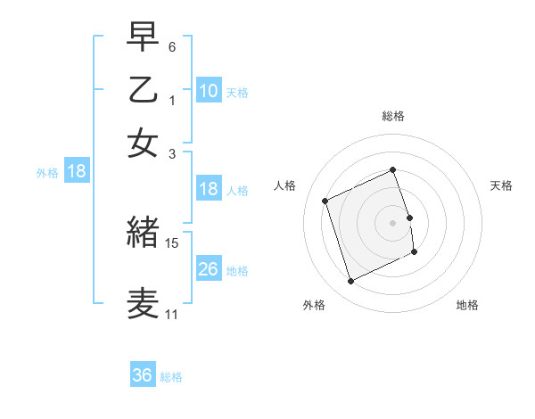 早乙女 緒麦さんを姓名の画数から五運を鑑定