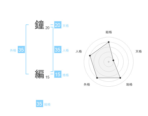 鐘 編さんの外格は35画の4点!