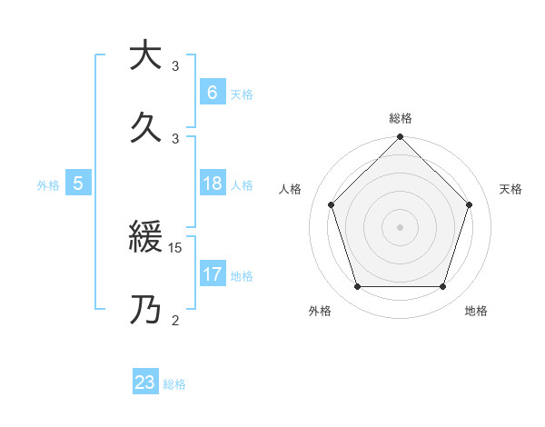 大久 緩乃さんを姓名の画数から五運を鑑定