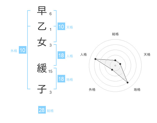 早乙女 緩子さんを姓名の画数から五運を鑑定