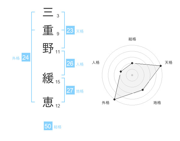 三重野 緩恵さんを姓名の画数から五運を鑑定