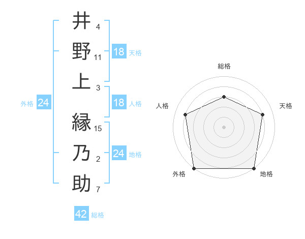 井野上 縁乃助さんを姓名の画数から五運を鑑定