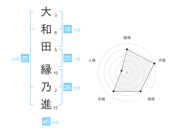 大和田 縁乃進さんを姓名の画数から五運を鑑定