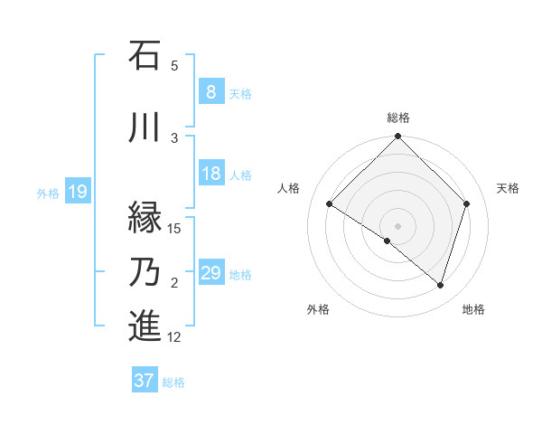 石川 縁乃進さんの総格は37画の5点