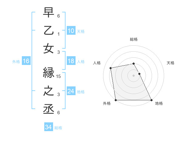 早乙女 縁之丞さんの総格は34画の2点