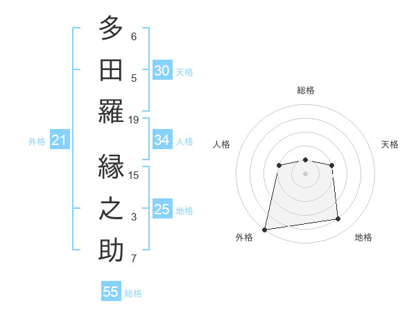 多田羅 縁之助さんの地格は25画の4点!