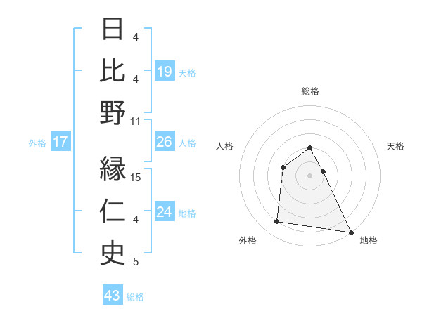 日比野 縁仁史さんの総格は43画の2点!