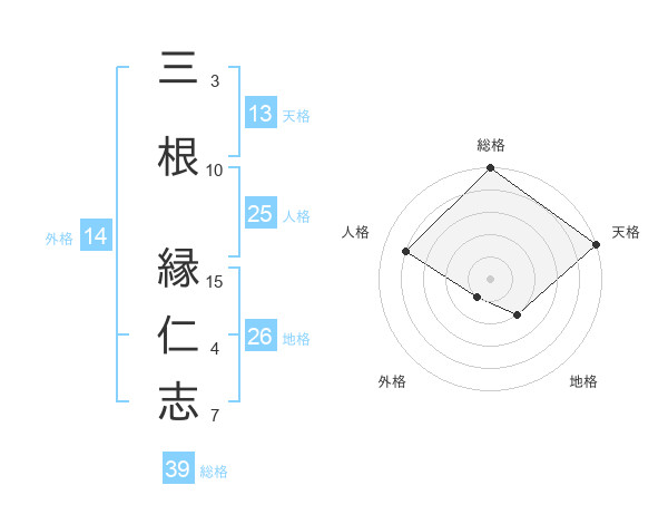 三根 縁仁志さんを姓名の画数から五運を鑑定