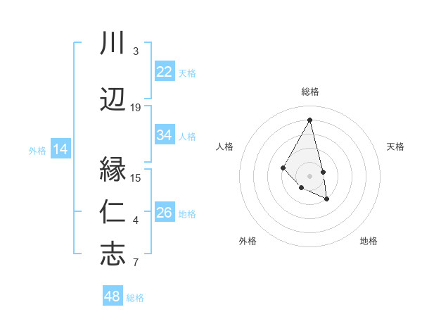 川辺 縁仁志さんの総格は48画の4点!