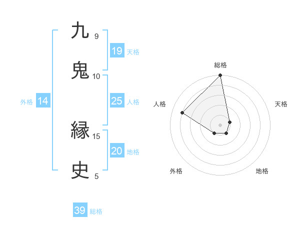 九鬼 縁史さんを姓名の画数から五運を鑑定