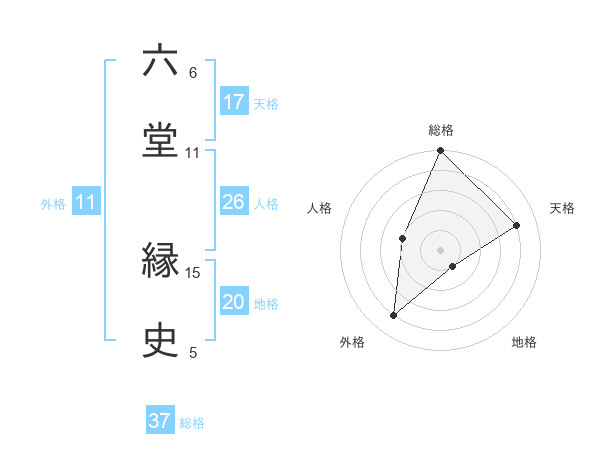 六堂 縁史さんの総格は37画の5点!