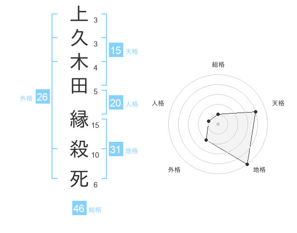 上久木田 縁殺死さんを姓名の画数から五運を鑑定