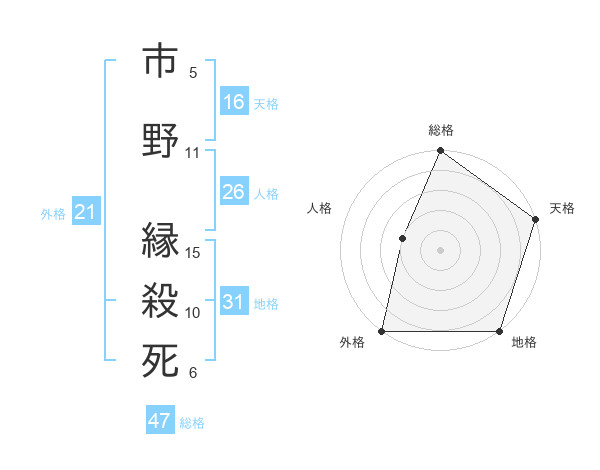市野 縁殺死さんの総格は47画の5点