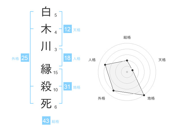 白木川 縁殺死さんを姓名の画数から五運を鑑定