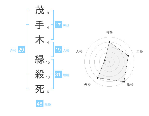 茂手木 縁殺死さんの総格は48画の4点!